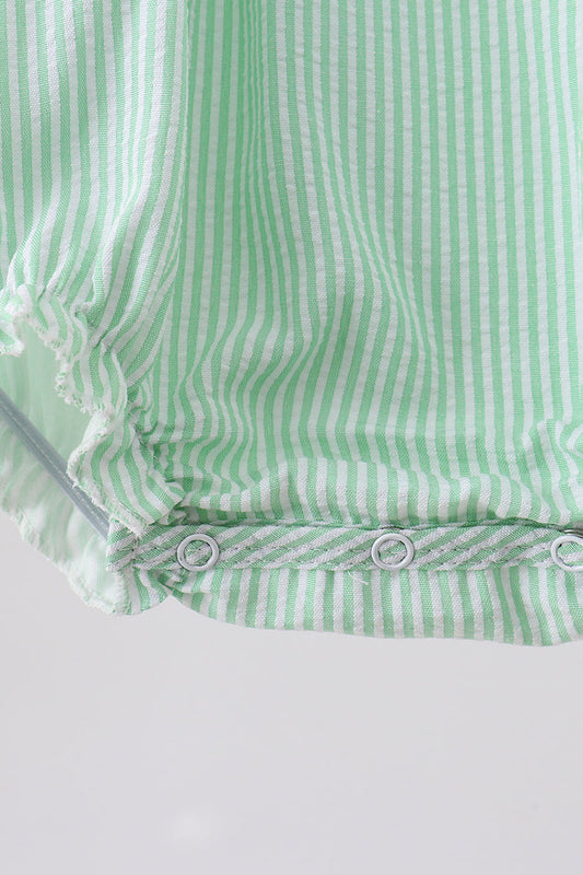 Green watermelon seersucker smocked ruffle bubble