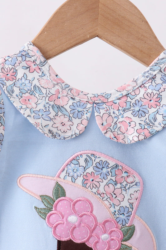 Blue floral boot applique ruffle shorts set