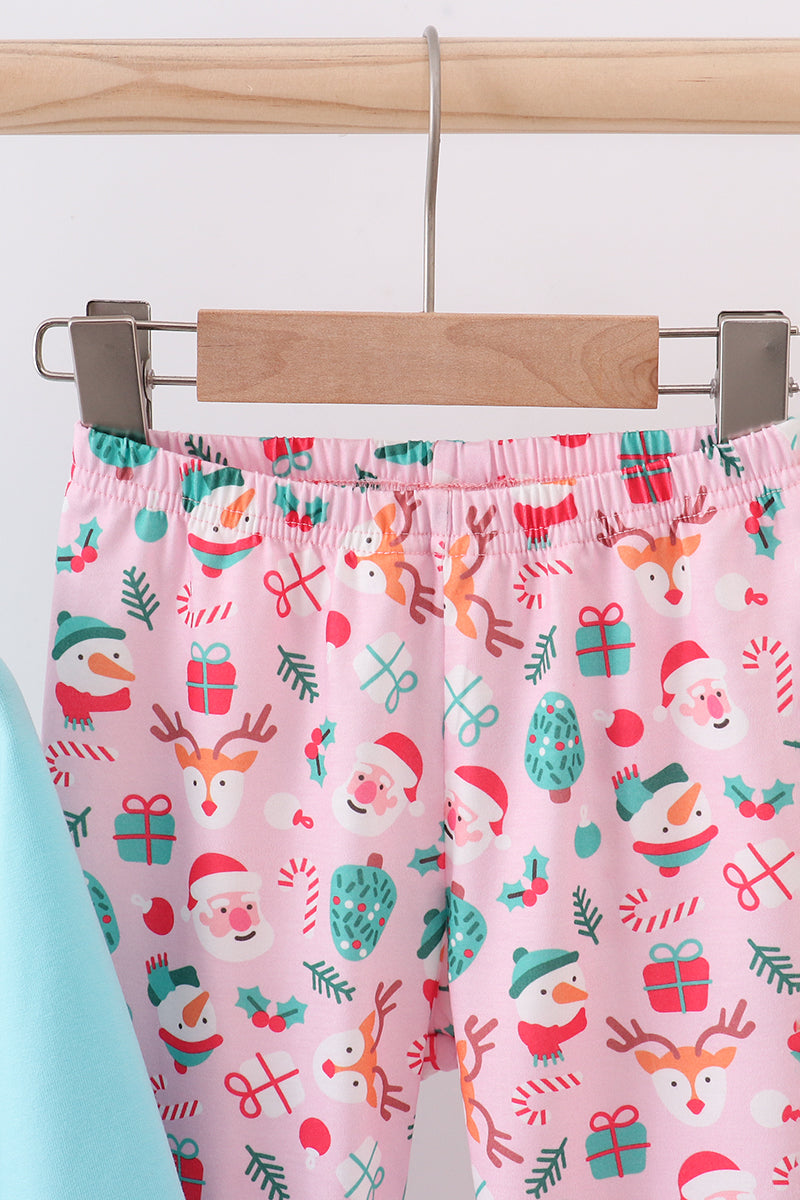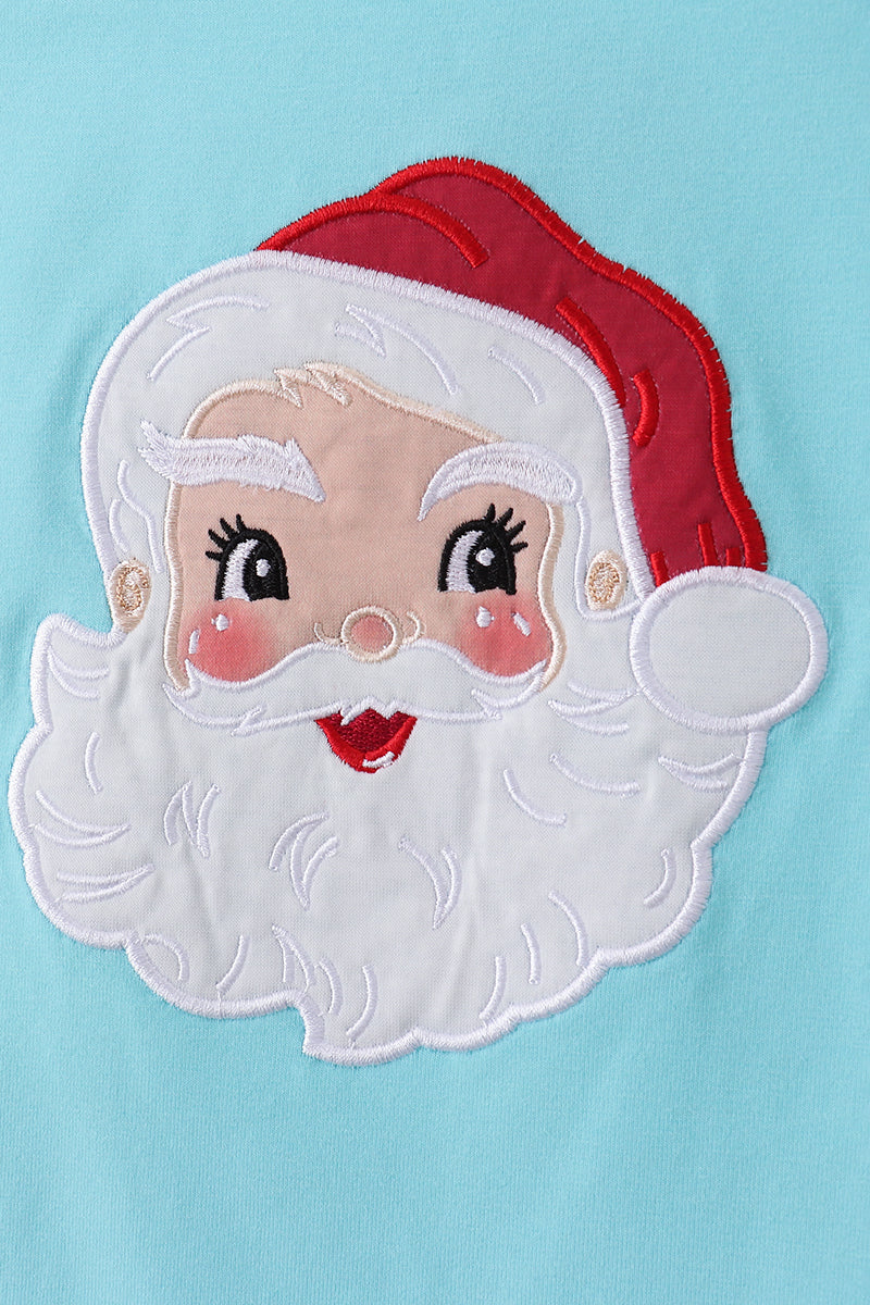 Blue christmas santa claus applique ruffle pants set