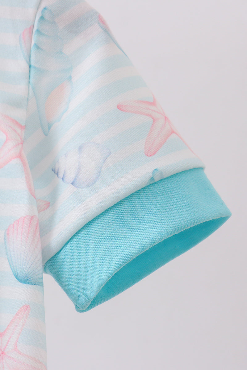 Blue shell starfish embroidery bubble