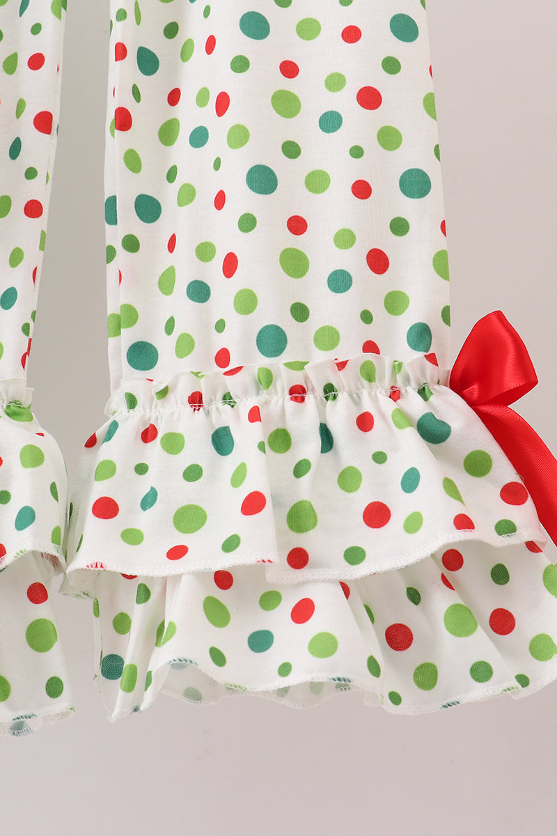 Bring festive cheer with this Green Santa Claus Applique Ruffle Pants Set. Featuring a playful Santa applique and charming ruffle details, this set adds holiday fun to any outfit. Soft and comfortable, it’s perfect for celebrating the season in style and spreading smiles wherever you go.