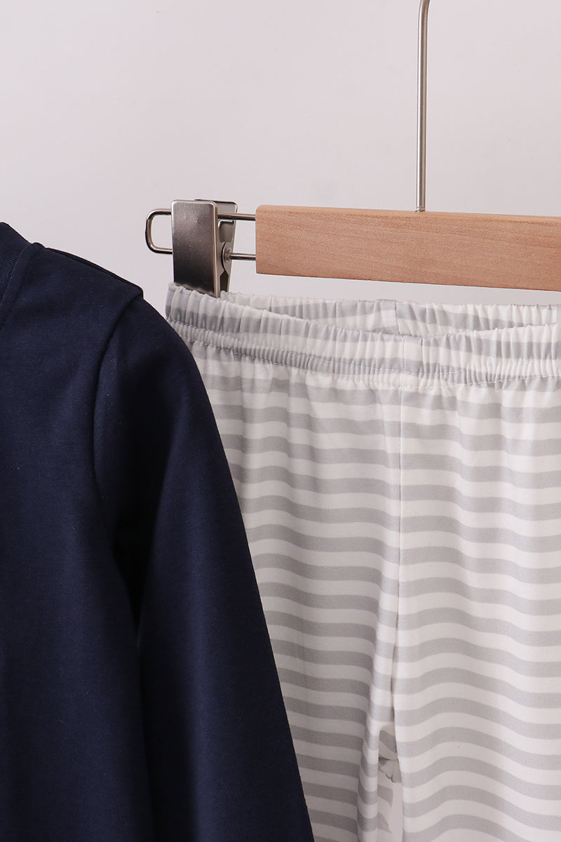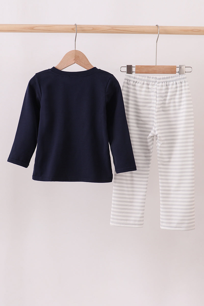 Navy christmas santa claus embroidery stripe pants set